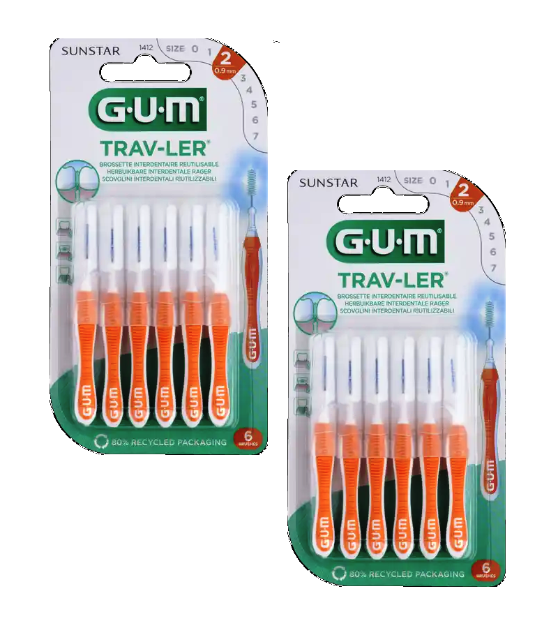 2xPack GUM TRAV-LER® Interdental Brush Candle 0.9 mm Orange - 12 Pcs