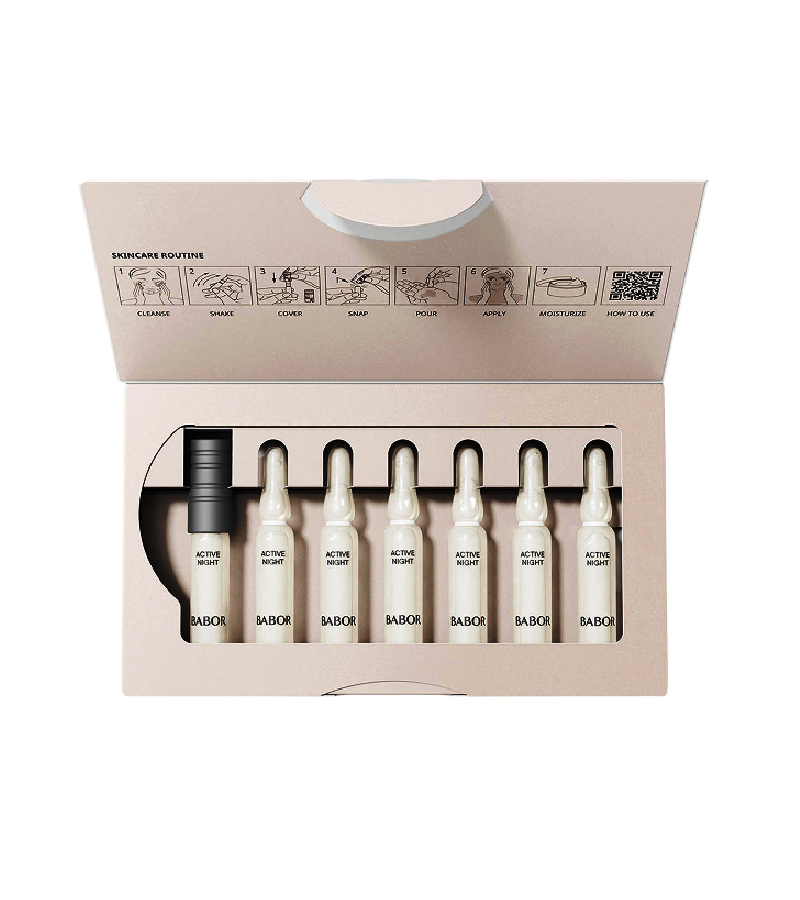 The mix of active ingredients in the Active Night Ampoule regenerates the skin, helps to maintain and strengthen the skin barrier and reduces wrinkles overnight. The skin is intensively moisturized and more resilient in the fight against daily challenges. Result: fresh, rested-looking skin in the morning.