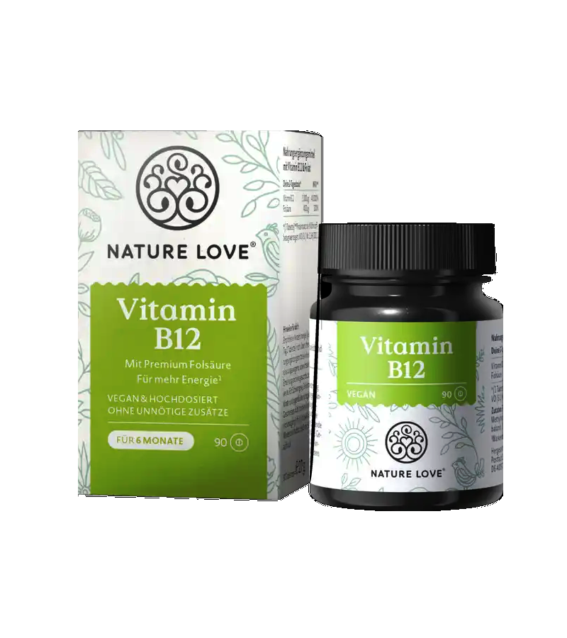 Vitamin B12 can really get on our nerves. In a good way. It feeds your energy metabolism* and keeps your head clear*. The tablets are naturally vegan. Nature Love places one thing above all else: naturalness. That's why they manufacture their products with the utmost care and, whenever possible, from natural, purely plant-based sources.