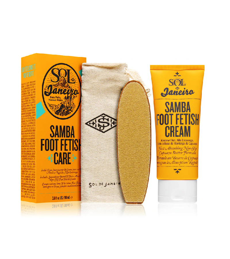 When considering your skincare routine, don't forget your feet. They're subjected to daily wear and tear from walking and standing, and only regular care will keep them beautiful and ready to take thousands more steps. Sol de Janeiro Samba Foot Fetish Care foot cream perfectly nourishes dry, rough skin, softening it and pampering your feet, leaving them velvety soft. No more cracked heels, calluses, or corns, just supple and smooth soles that you can show off to the world without hesitation.